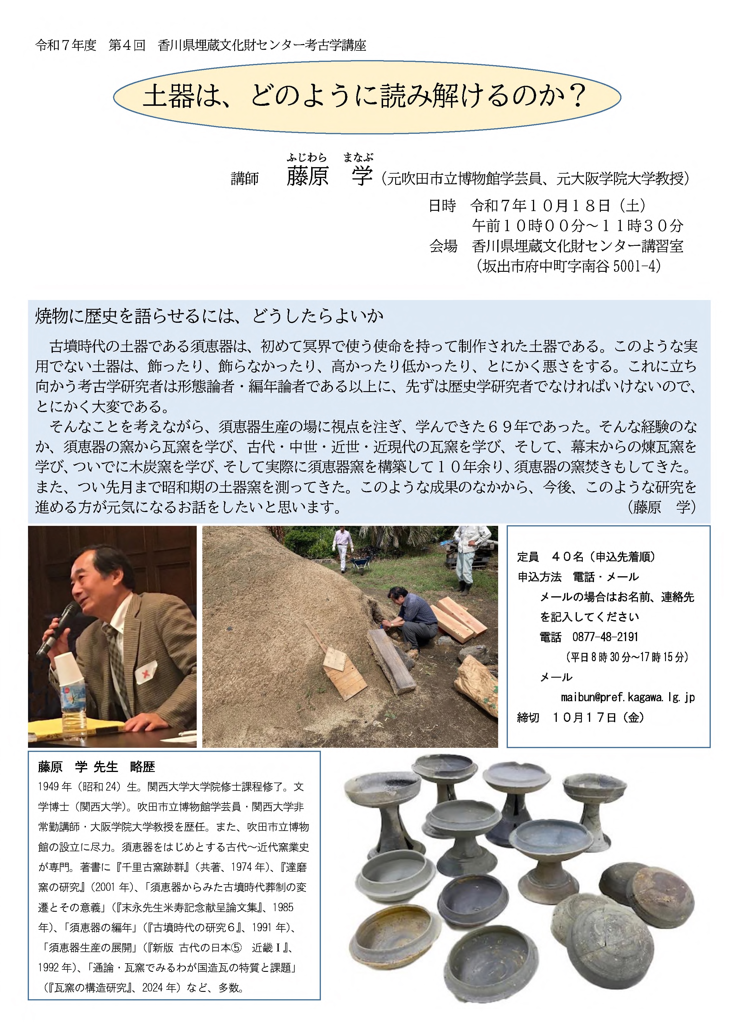 講師の藤原先生は、須恵器をはじめとする古代~近代窯業史がご専門です。これまでに研究されてきた内容の中から、今後、このような研究を進める方が元気になるお話をしていただきます。